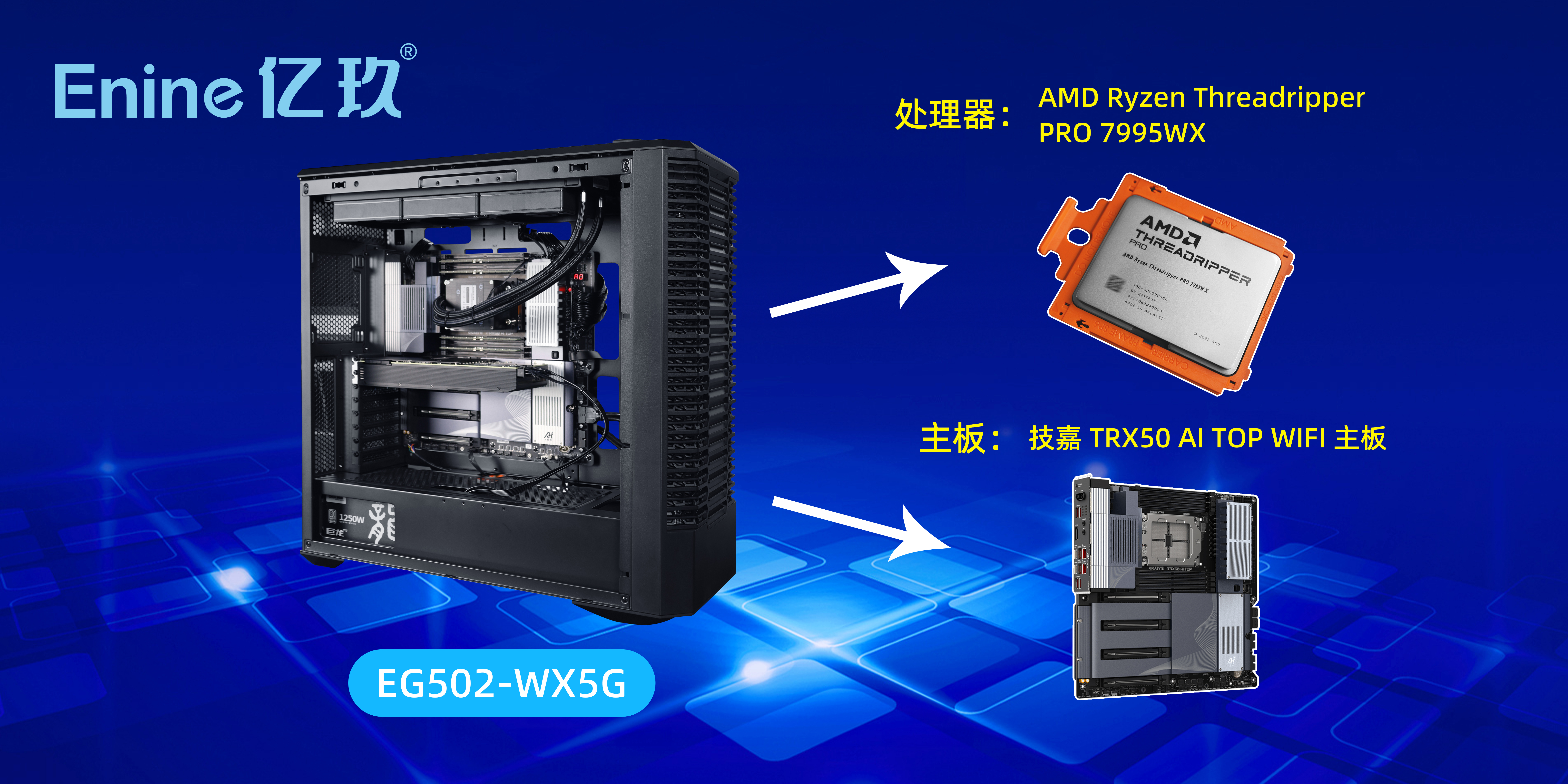 为真正回应这一痛点,Enine亿玖推出基于 AMD Ryzen Threadripper PRO 7995WX(96核/192线程) 的高性能仿真工作站。这颗旗舰级处理器不仅拥有高达5.1GHz的睿频能力,更以单路架构实现极致并行效率,避免了双路平台常见的NUMA延迟问题,在 ANSYS、Abaqus、COMSOL 等主流有限元与多物理场软件中展现出惊人的实际加速比。搭配 技嘉 TRX50 AITOP WIFI 主板,整机充分发挥 DDR5 ECC 内存与 PCIe 5.0 总线的潜力,确保从数据加载到结果输出的全链路高效稳定。
